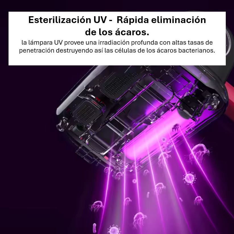 Limpieza de colchones: Diseñada con un enfoque en el cuidado del colchón, esta aspiradora realiza una limpieza profunda sin causar ningún daño a la tela. La tecnología de luz púrpura mejora su eficiencia en la limpieza profunda, lo que la convierte en una máquina limpiadora de colchones ideal.